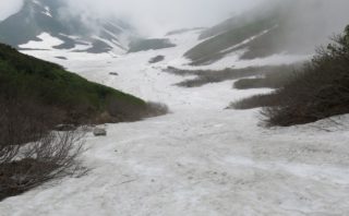 白山ヒルバオ雪渓にて2013年シーズン山スキーをクロージングしてきた。滑走時はガスが濃くホワイトアウト状態であったが、登り返し中にガスが切れ、全容をカメラに納めることが出来た。■メンバ 単独■用具 STIGMA160cm、TLT SPEE...