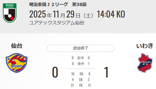 POに進出出来てもJ1昇格ハードルが高いことは分かっているが、それでも残念だった。いわきFCは相性が良かっただけに…。