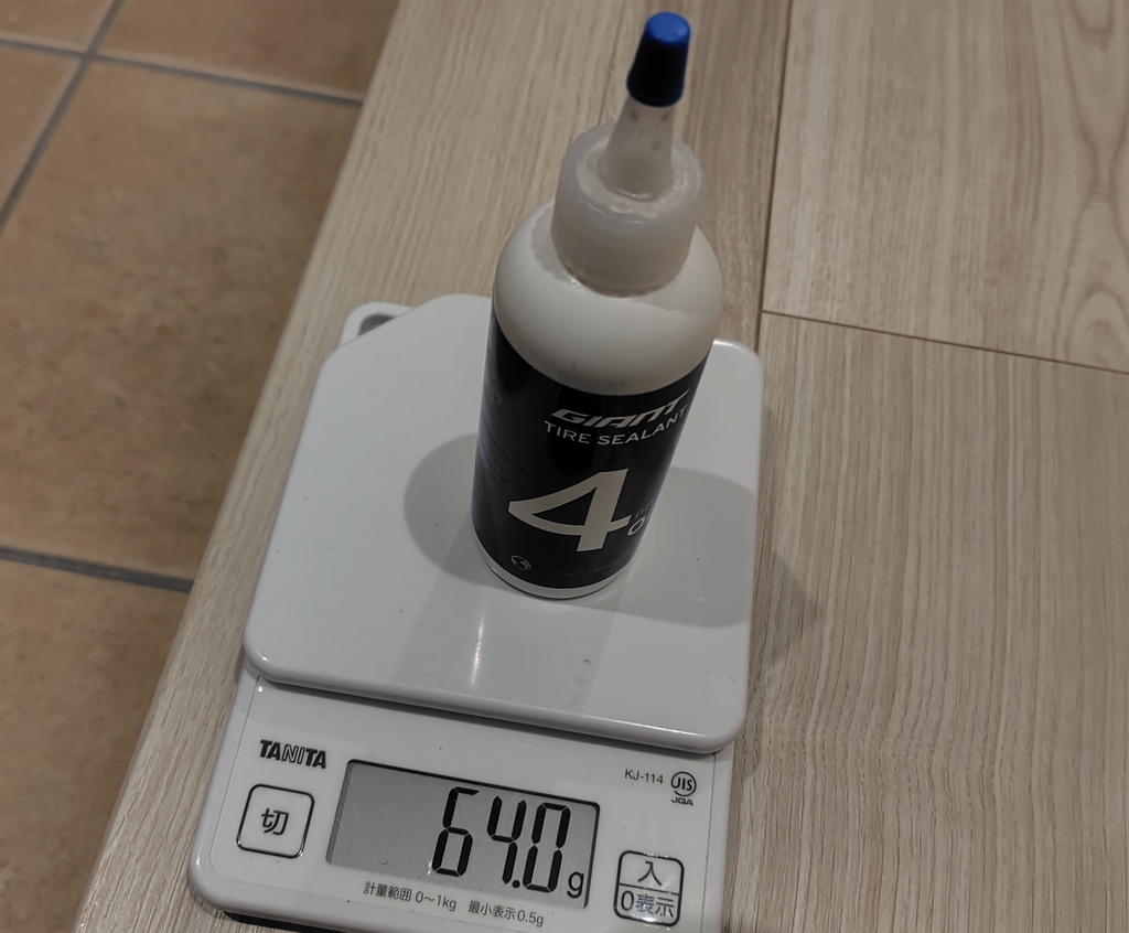 シーラントを注入するとメンテナンス時にベトベトして大変らしいが、軽微なパンクはリークパスにシーラントが引き込まれて勝手に修復され、単独、ロングライドが主な私の場合、メリットが大きいと注入することにした。もっと早くやれよって感じだが…