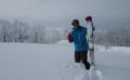 2275mまではジェットコースターでスカイランを滑走。その先はショートカットに沿って夫婦松まで快適な林間スキーとなる。夫婦松からは予定通り牧場ルートへ降りる。こちらもヤブは埋まり膝新雪のパウダースキーだった。