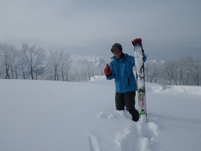 想像通りの浮きだった。Excellent! 写真はショボイ斜面だが上部の疎林尾根はガッツリ頂きました。