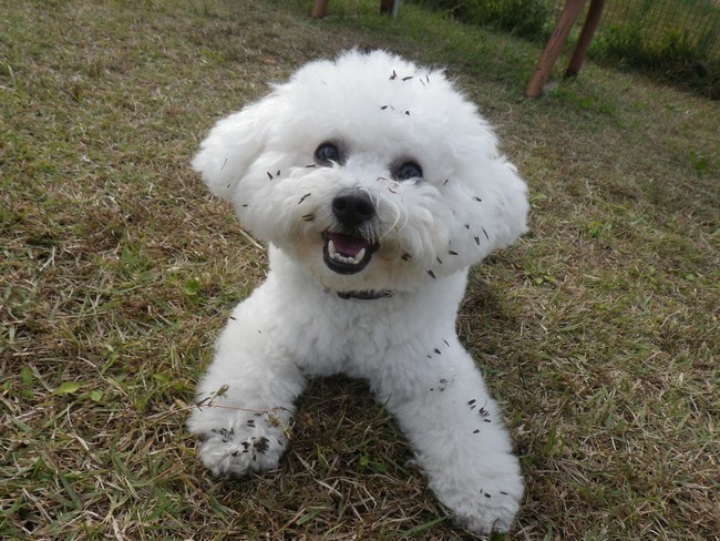 「ひっつき虫」だらけになった愛犬。毛に絡み付いて取るのが一苦労だった。