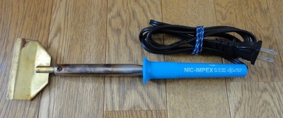 2.5分以上加熱したこてで糊をこそぎ取る(完全に取り除くまで何度も行う)