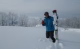午後から天気が崩れる予報の通りガスが濃くなってきた。日射でパウは消えたが新雪は今シーズン初である。そろそろ出発しますか^^