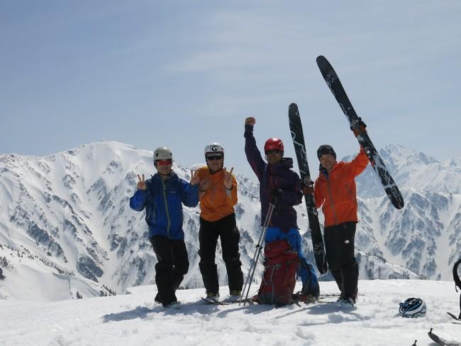 丁度7時間だった。天気最高で眺望は360度遮るものなし! 澄んだ空気で富山湾の形がよく見えた^^ 全てに感謝である。毛勝に行くか話合った結果、今回はここまでとして写真と食事タイムとなる。それでも単純標高差1700mである。