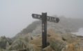 白山山頂(御前峰2702m)。周囲はガスの中。遠くからゴロゴロと雷音が聞こえポツポツと雨も振り出したため5分ほどで下山開始。