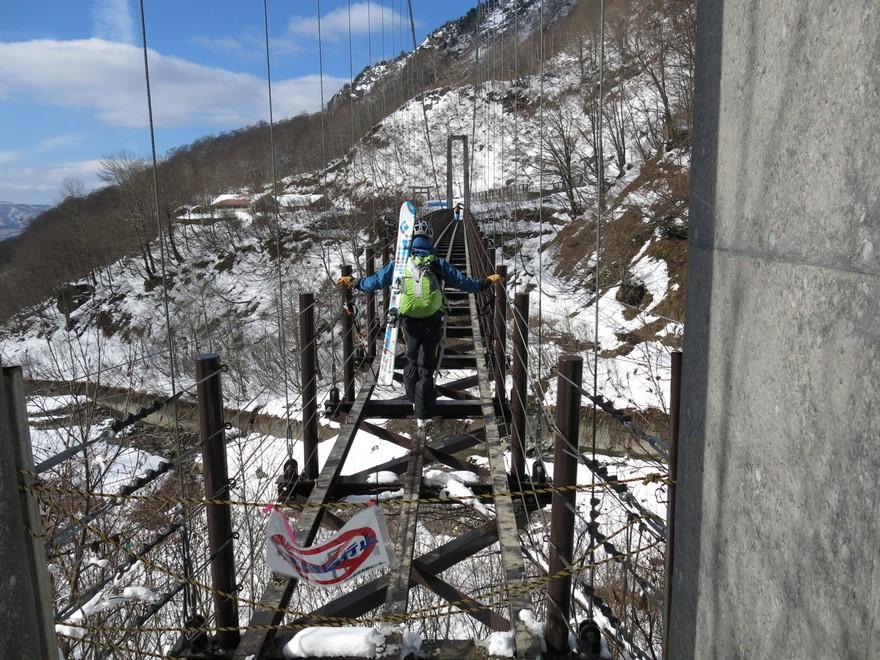 11:00 橋は撤去されていた…。ということでシールを貼って林道で中飯場まで歩行…。こんなこともあるでしょう。都度状況判断が迫られる探検スキーは面白かった^^