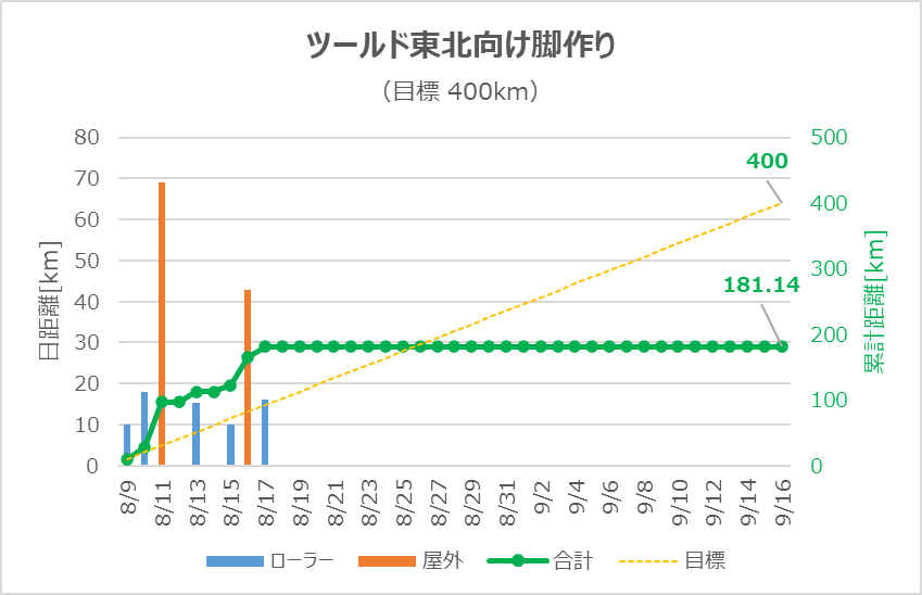目標 ツールド東北9/17までに400km走る(室内ローラ込み)