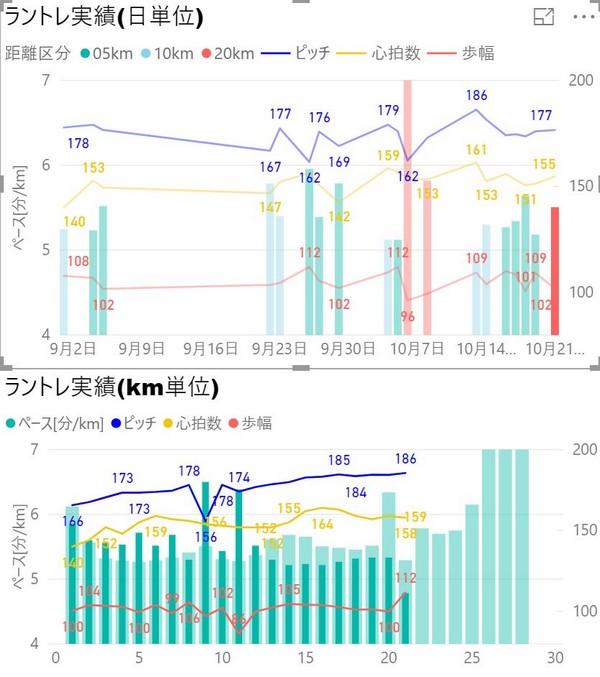 1021-2.JPG心肺余裕あったといいつつも15km以降は心拍高め? やはり疲労蓄積のためか?