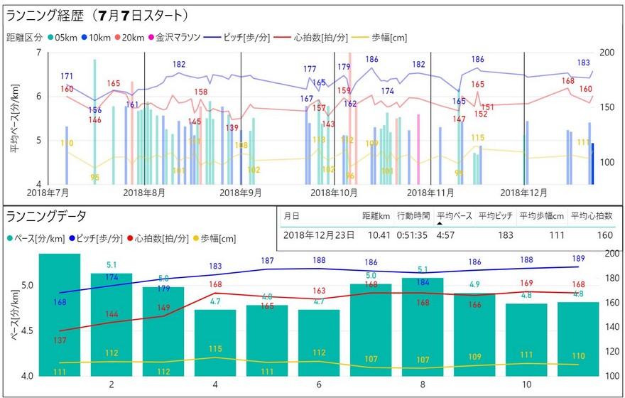 昨日のミッドフット+ピストン走法の筋肉痛?で体が強張っていたが動きはよく走り始めからキロ5分半ペース^^