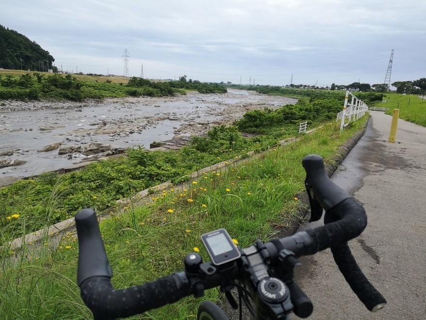 天狗橋を渡らず手取川の右岸をライドした