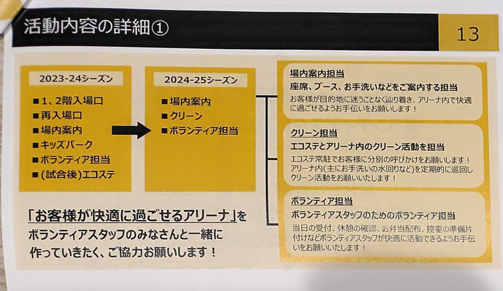 ベガルタ同様、6/30のスポーツボランティアマッチングで登録。今回、来たる24-25シーズンに向けた事前説明会にMTBで参加してきた。