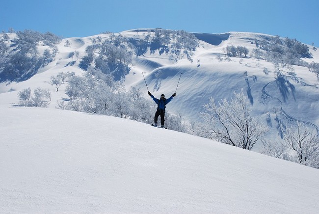 標高1286mと低いが北斜面は完璧なバージンスノーだった。雪も浅すぎず深すぎず、斜度も変化に富み面白い。小さな谷と尾根を選びながら滑るのも楽しかった。