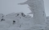 強風で長いエビの尻尾が形成された山頂着。出発から2時間40分ほど。
