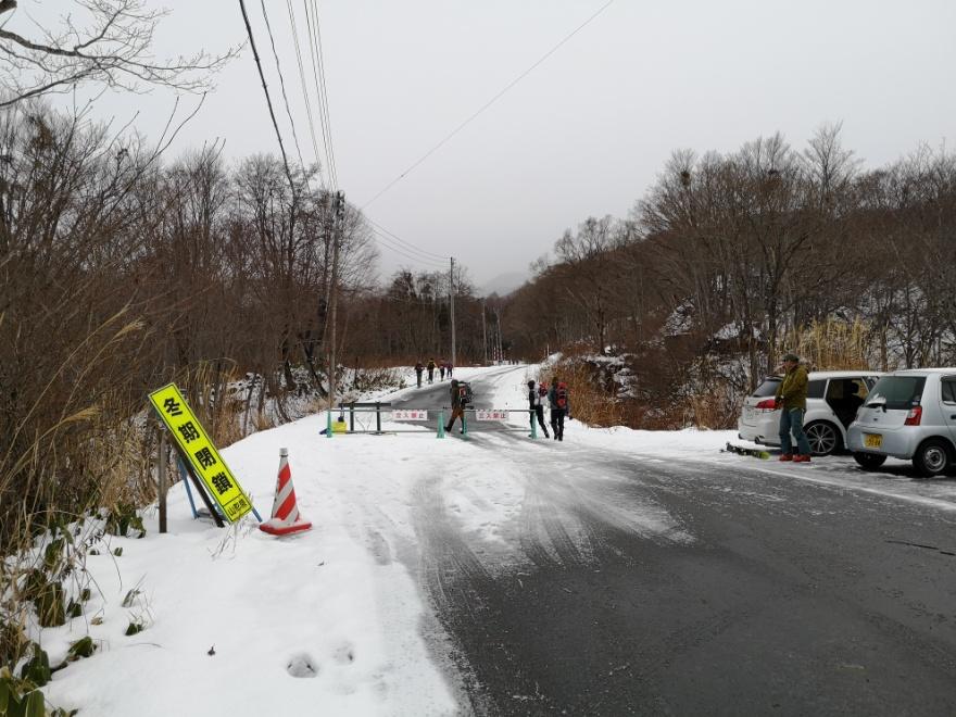 ・姥沢までの道路は一部でアスファルト露出していたがスタートからスキー登行可