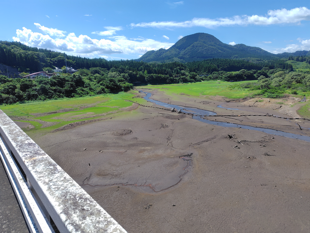 少なっ! 通常は水の下にある水辺に青々と草が生えている💦