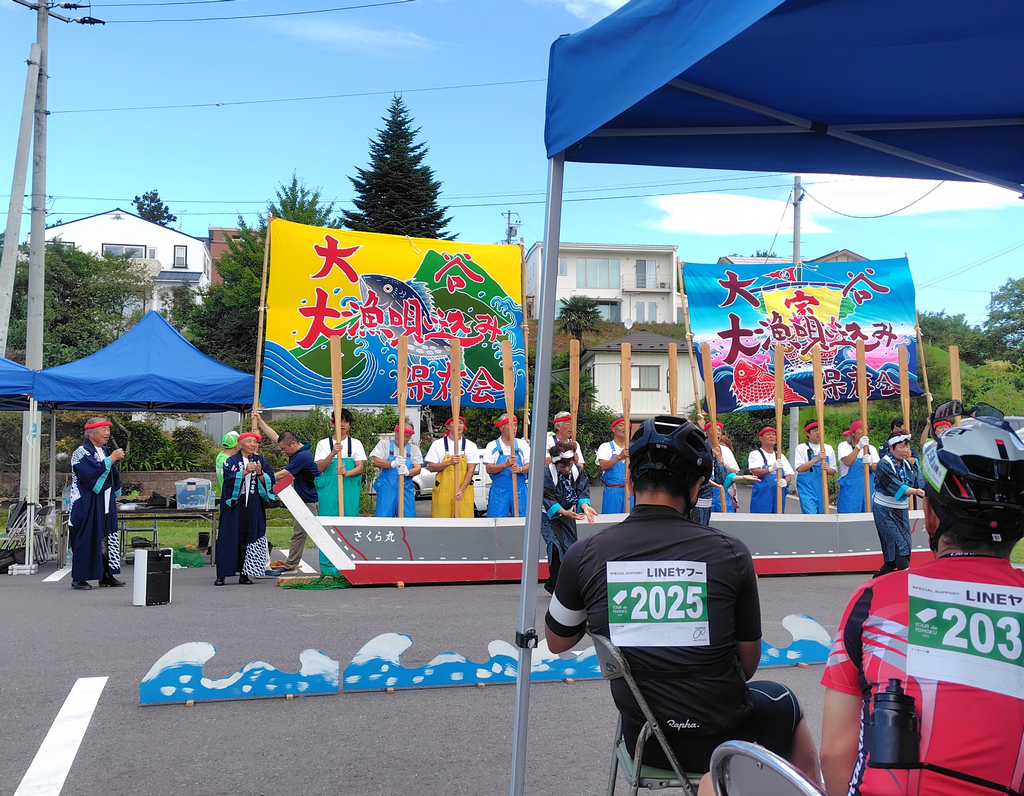 気仙沼フォンドでは見られなかったが、距離の短いフォンドでは途中の登り坂でヘロヘロになって最初のエイド到着前にサポートが必要になるライダーもいたらしい。