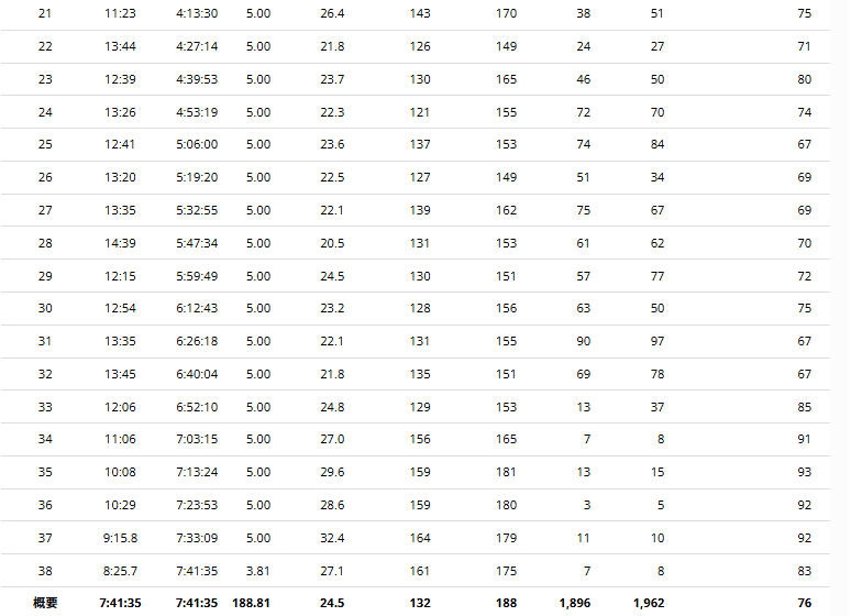 この計画で当日は脚を残す形でフィニッシュ出来た。しばらくはこの準備でよいと思う。