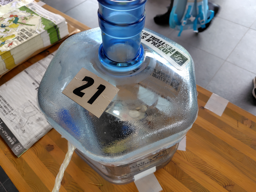 カンパ箱。1000円札を入れてくれる方も多かった。