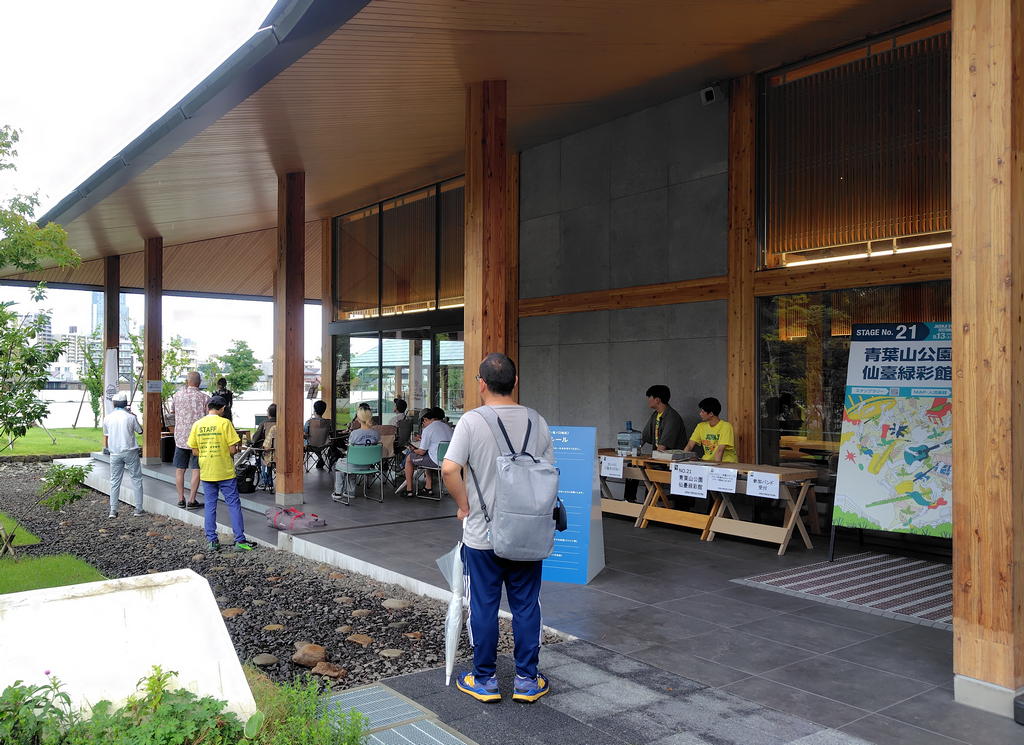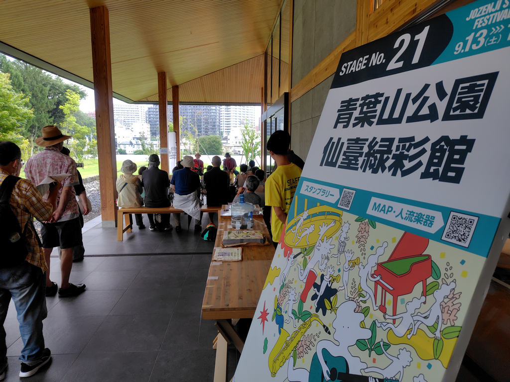 活動場所となった仙臺緑彩館は、今回が初の開催地。集合場所の西公園中央広場からは約1.5kmと少し距離があるものの、広い軒下で演奏・鑑賞ができるため、雨天だった今回は非常に恵まれた環境だった。