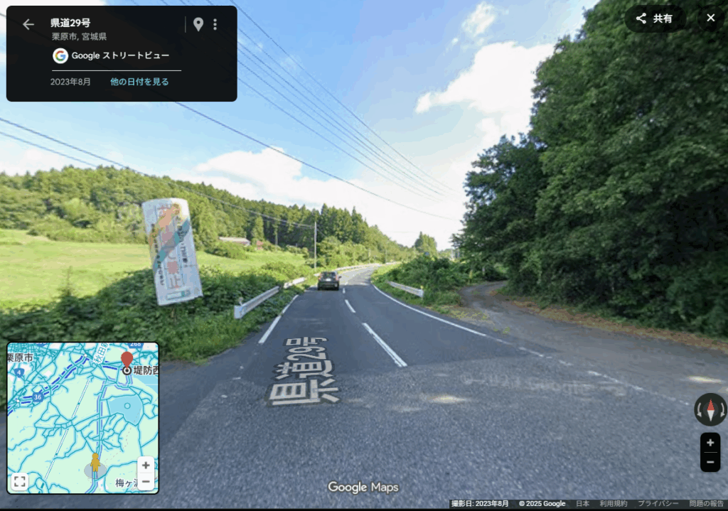山側の県道も道幅は狭いが交通量が圧倒的に少ないので、バイクとの間隔をあけて追い越してくれる。