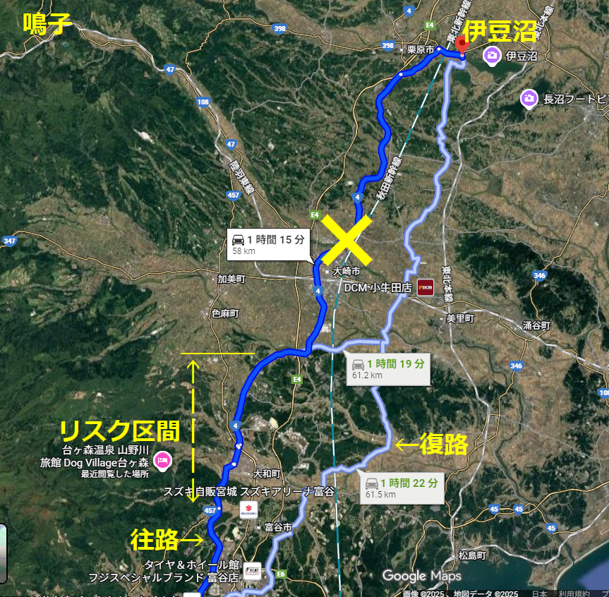 ・自宅から伊豆沼 4時間(同等距離の鳴子ライドで片道4時間)